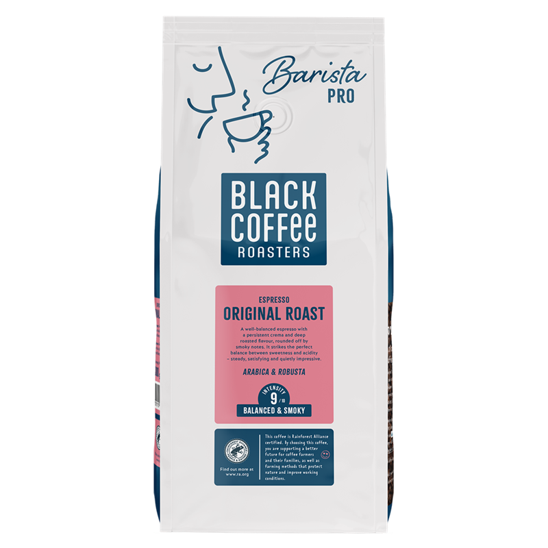 - Barista Pro - fordi I fortjener særlige kaffeøjeblikke! Barista Pro bringer glæden ved kvalitetskaffe ind på arbejdspladsen. Du ved, den slags kaffe, der får skuldrene til at sænke sig, smilene til at bredes og samtalerne til at flyde. Vores bønner er altid certificerede - fordi omtanke bare smager bedre. De er økologiske, Fairtrade eller Rainforest Alliance, og de er ristet med kærlighed på vores risteri i Aarhus. Det er baristakvalitet og ren kaffelykke! En hel symfoni af smagsnuancer og ægte ristekunst - og det er uanset om I brygger espresso, cappuccino eller kræser for et filterbryg til mødet på en tirsdag… for hvorfor egentlig ikke? Omtanke smager bare bedre… Alle kaffer i vores Barista Pro-sortiment er certificerede. Det betyder mere ansvarlige dyrkningsmetoder og bønner dyrket med respekt for både mennesker og natur. For dig som virksomhed er det en nem måde at servere kvalitet med omtanke – og vise at smag og værdier sagtens kan gå hånd i hånd. For i sidste ende, så smager omtanke bare lidt bedre, ikke?...