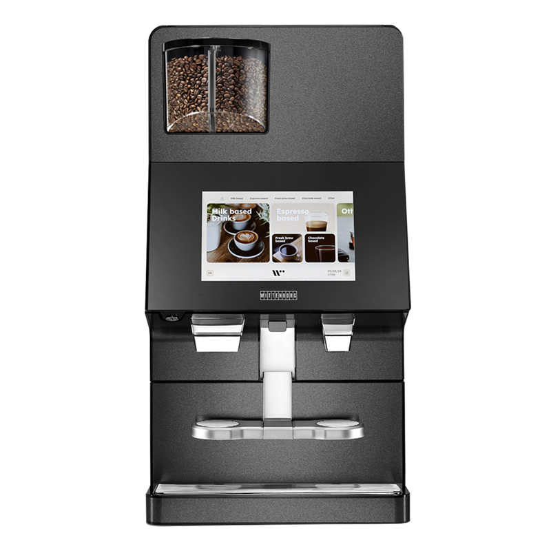 - Wittenborg W100 er skabt til at levere de bedste kaffeoplevelser. Maskinens æstetik gør den velegnet til kontoret eller cafe’en, hvor den er med til at byde velkommen med sit harmoniske design. Designet med den store 12-tommer touch-skærm giver brugeren en optimal bruger oplevelse også med mulighed for problemfri integration af connectivity. Ligeledes sikrer maskinens LED-belysning et moderne look til miljøet. Maskinen har en kapacitet på op til 250 kopper pr dag og udstyret med 2 udløb også en hurtigere og lettere betjening.