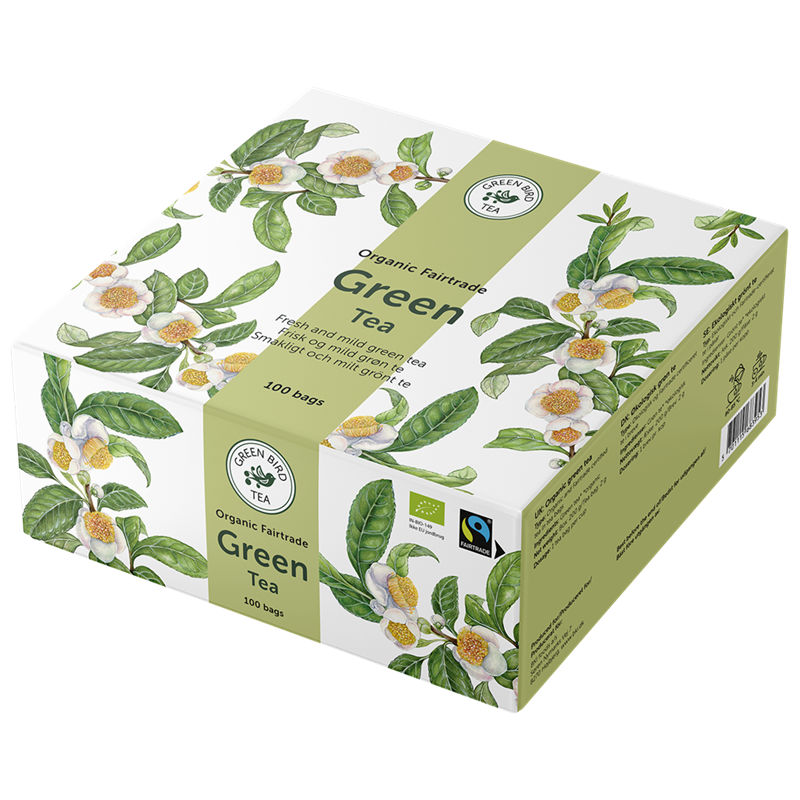 - Frisk og mild grøn te. Te filterposer i Green Bird Te serien er fri for plastik.