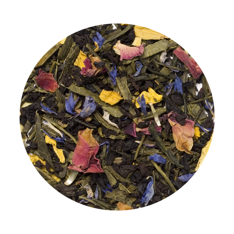 Bjerg Te er en blanding af grøn Ceylon te, sort Pekoe og blomster. Grøn te høstes normalt på et sent stadium af teens udvikling, hvilket gør bladet blød i smagen. Pekoe er en fin topskudskvalitet, som oftest har mere smag end de ældre blade. Teen er blandet med tørrede blomster og olier med eksotisk smag. Dufter af blomster og har en dejlig frisk, blød smag.